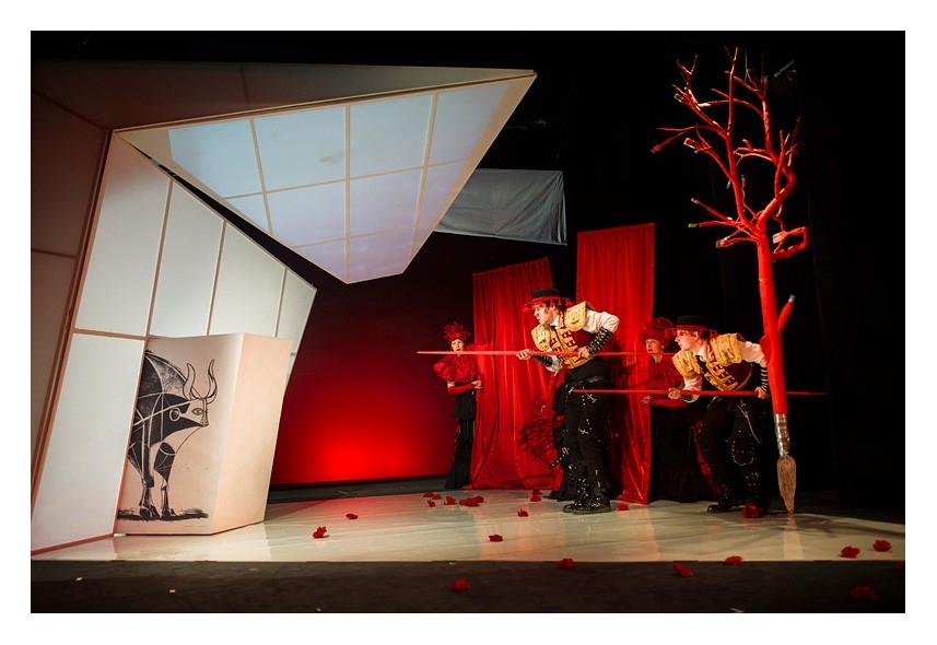 „Pomysł na realizację przedstawienia zrodził się z zestawienia postaci byczka z bajki Munro Leafa z motywem byka pojawiającym się w twórczości Pabla Picasso. Fabułę książki umieszczamy, więc w kubistycznym świecie malarstwa i rzeźby, który jest bliski wrażliwości dziecka i jego postrzeganiu świata” – mówi reżyser spektaklu Robert Jarosz.