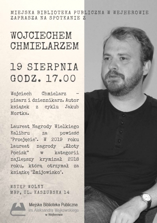 Wojciech Chmielarz jest polskim pisarzem i dziennikarzem, autorem książek z cyklu Jakub Mortka. Publikował między innymi dla „Pulsu Biznesu”, „Polityki” czy „Nowej Fantastyki”. W 2013 oraz w 2014 był nominowany do Nagrody Wielkiego Kalibru, w 2015 został jej laureatem za powieść „Przejęcie”. W 2019 roku został laureatem nagrody „Złoty Pocisk” w kategorii najlepszy kryminał 2018 roku, którą otrzymał za książkę „Żmijowisko”. Książka ta stała się kanwą serialu kryminalnego wyprodukowanego przez jedną ze stacji telewizyjnych. Spotkanie poprowadzi Aleksandra Michalak, znana swoim czytelnikom z bloga „Matka Sanepid”, laureatka nagrody „Gryf Literacki 2012”.