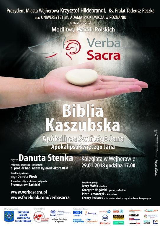 W ramach 15. prezentacji Biblii Kaszubskiej z cyklu Verba Sacra - Modlitwy Katedr Polskich, usłyszymy po kaszubsku Apokalipsę Św. Jana. Religijno- artystyczne widowisko odbędzie się w wejherowskiej Kolegiacie w poniedziałek 29 stycznia 2018 roku o godz. 17.