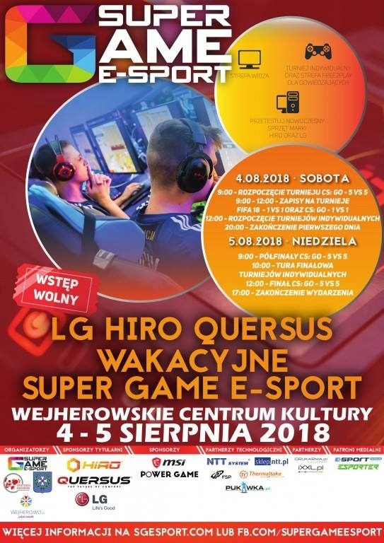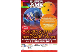 Zapraszamy na WAKACYJNE SUPER GAME E-SPORT W programie szereg atrakcji - strefa widza, turniej indywidualny, oraz strefa free2play dla odwiedzających, możliwość przetestowania nowoczesnego sprzętu marki HIRO oraz LG.